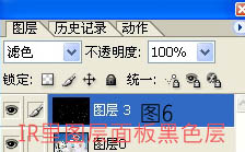 b、鼠标选中IR里图层面板上的黑色图层如图6,再点帧面板上的第二帧,用移动工具在原稿上拖移,把在PS里放大的黑色层往下拖移,直到跟原稿的右上角对齐,如图7。