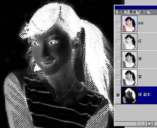 2、同样,复制绿通道为“绿 副本”,然后ctrl+i反相。