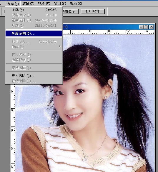 1、现在进行第四扣,色彩范围抠图。将前景色设定为“黑色”,注意我用红圈圈住的地方。