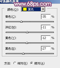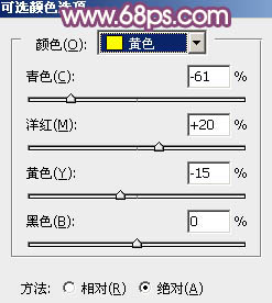 1、打开素材图片,创建可选颜色调整图层,对黄、绿、青进行调整,参数设置如图1 - 3,效果如图4。这一步给图片增加橙红色。