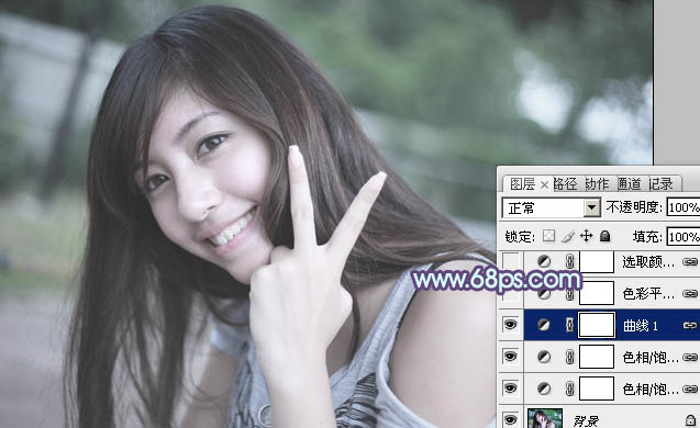 Photoshop调出中性青蓝色效果的外景美女照片教程