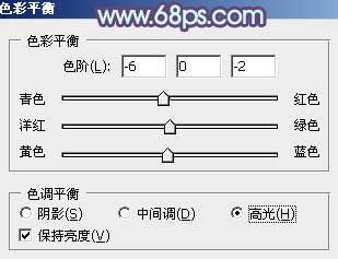 4、创建色彩平衡调整图层,对中间调,高光进行调整,参数设置如图6,7,效果如图8。这一步主要增强图片高光部分的颜色。
