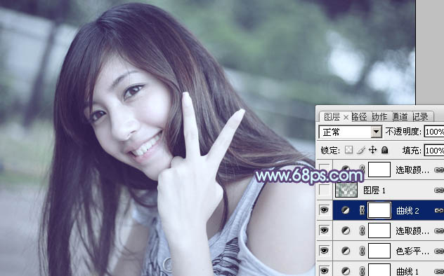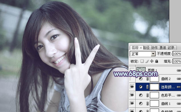 Photoshop调出中性青蓝色效果的外景美女照片教程