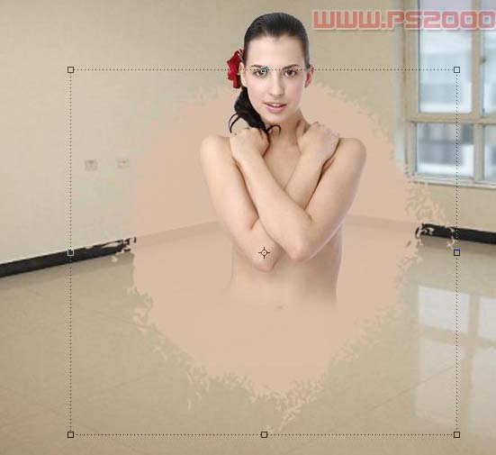 5、修整好流溅的形状,按Ctrl + T将流溅形状压扁,使之与地面透视关系一致。