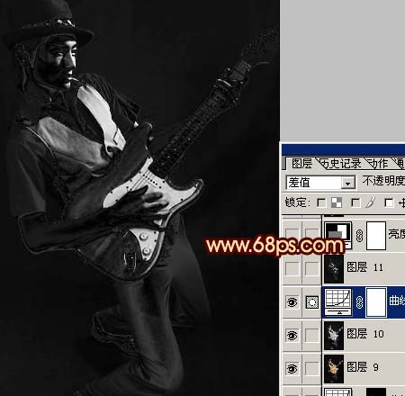 确定后把图层混合模式改为“差值”,效果如图