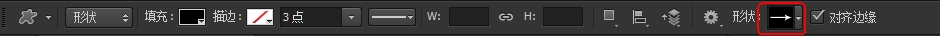 第二步:在Photoshop CS6“自定形状工具”属性栏中单击“形状”右侧的缩略图按钮。