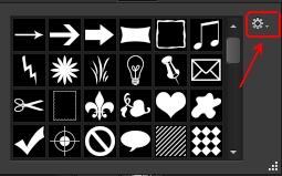 第三步:在弹出的“形状”列表中单击“右上角的设置按钮,从弹出的下拉列表中选择“载入形状”。