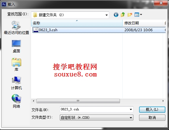 第四步:在打开的“载入”对话框中选择已经下载的要载入的ps形状(这里我们载入扑克牌形状),单击“载入”按钮,即可载入选定的ps形状。