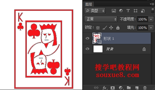 第六步:单击选择一种载入的扑克牌形状,在Photoshop CS6图像窗口中按住鼠标左键并拖动鼠标,绘制出所选择ps形状。