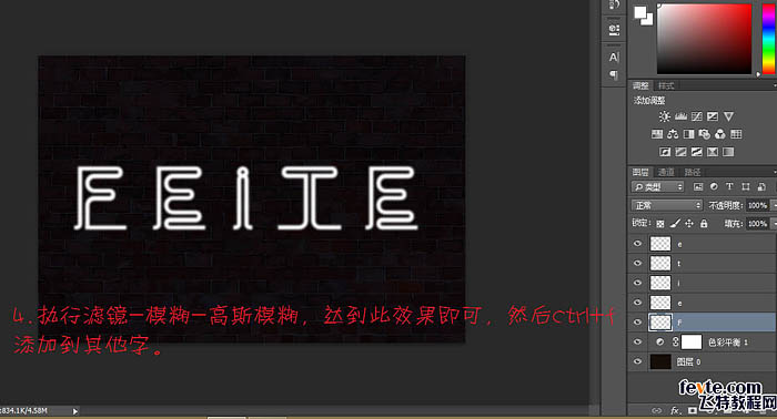 4、执行:滤镜 > 模糊 > 高斯模糊,达到此效果即可,然后Ctrl + F 添加到其它字。