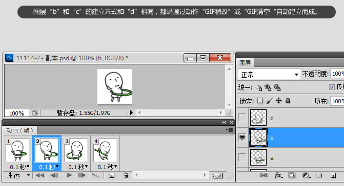 7、图层“b”和“c”的建立方式和“d”相同,都是通过动作“GIF修改”或“GIF清空”自动建立而成。