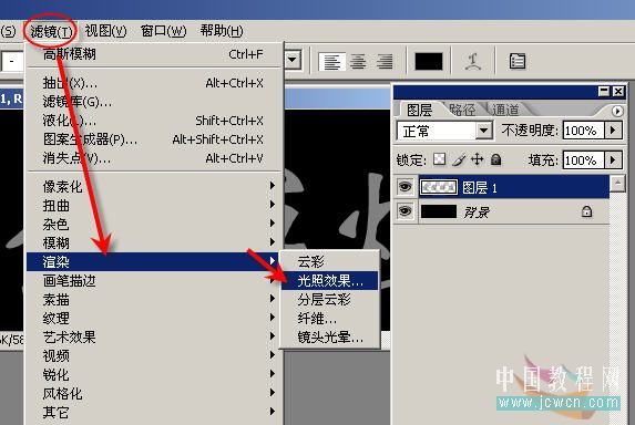 11、单击RGB通道,再返回图层1,执行滤镜——渲染——光照效果。
