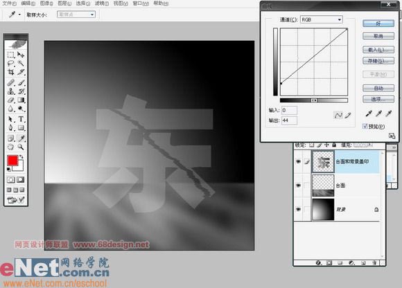 九、在盖印层上,按“ctrl+m”调出曲线对话框,如图调节,得到微微变亮的“东”字。