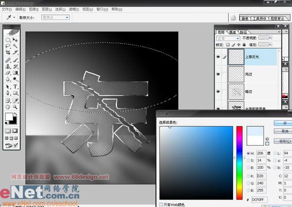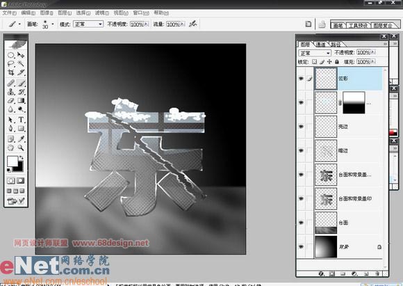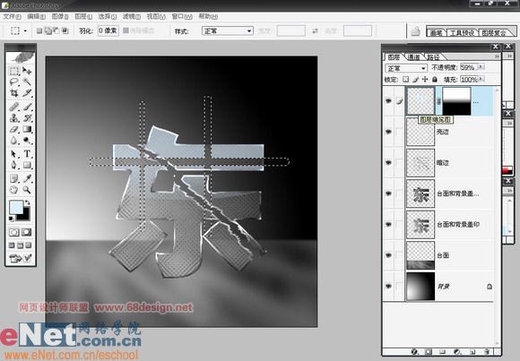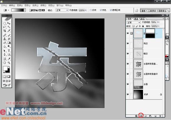 十三、用橡皮檫工具,在亮边层上不断轻擦,以露出后面的暗边,模仿出玻璃边复杂的光感。