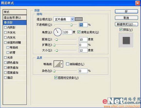 “投影”图层样式,设置参数如图21: