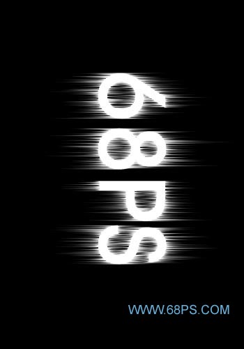 2.按Ctrl + J 把文字复制一层,把文字副本隐藏,回到文字图层删格化图层,然后选择菜单: 图像 > 旋转画布 > 顺时针旋转90度,再选择菜单 : 滤镜 > 风格化 > 风 方向选择从右然后确定,按 Ctrl + F 加强一次,按 Ctrl + Alt + F 方向选择从左,确定后 按 Ctrl + F 加强一次效果如图2
