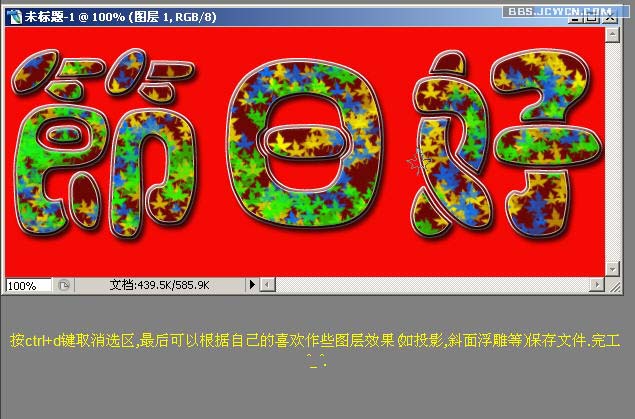 13、按ctrl+d键取消选区,最后可以根据自己的喜好作些图层效果(如投影,斜面浮雕等)保存文件,完工^_^
