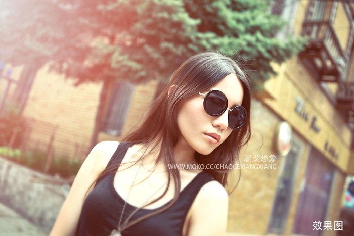 Photoshop调出柔美暖色效果的古建筑物边美女照片
