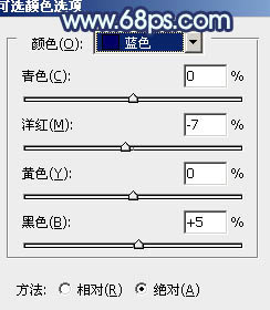 10、创建可选颜色调整图层,对蓝、白、黑进行调整,参数设置如图34 - 36,效果如图37。这一步主要给图片高光部分增加淡青色。
