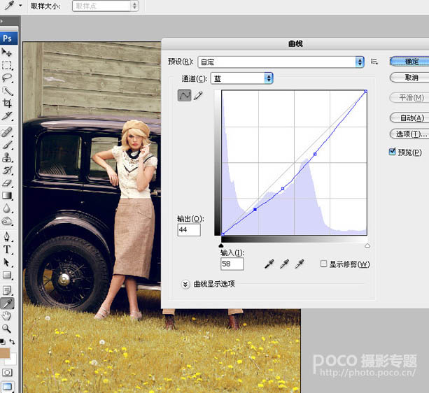 6、曲线通道-蓝,适当调整画面的色彩。