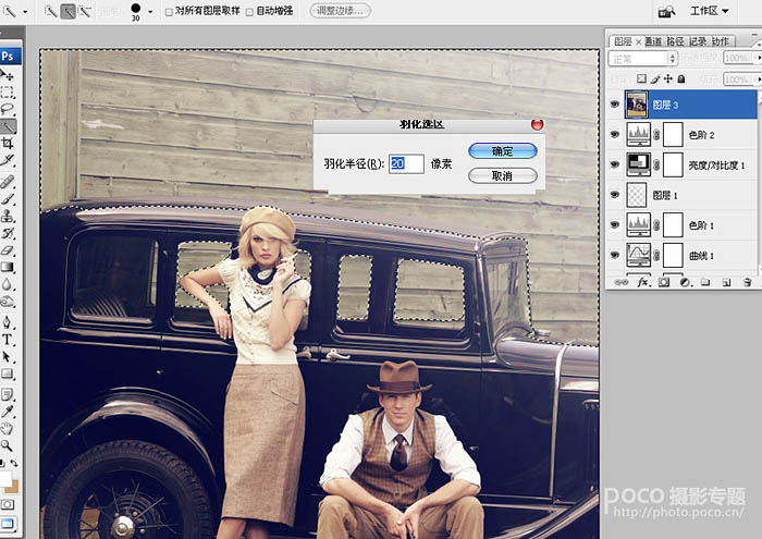 17、盖印图层,用快速选择工具,将图片上墙壁选出来,羽化值为20像素。