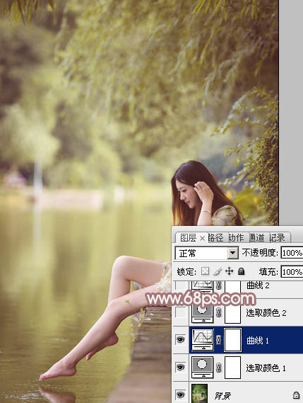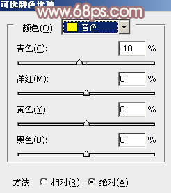 1、打开素材图片,创建可选颜色调整图层,对黄,绿进行调整,参数及效果如下图。这一步给图片增加黄绿色。