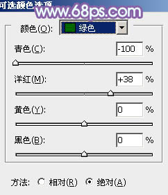 1、打开素材图片,创建可选颜色调整图层,对黄、绿、白、中性、黑进行调整,参数设置如图1 - 5,效果如图6。这一步把背景部分的绿色转为褐色。