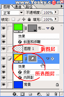 图层面板上显示了图像中的所有图层、图层组和图层效果,我们可以使用图层面板上的各种功能来完成一些图像编辑任务,例如创建、隐藏、复制和删除图层等。还可以使用图层模式改变图层上图像的效果,如添加阴影、外发光、浮雕等等。另外我们对图层的光线、色相、透明度等参数都可以做修改来制作不同的效果。图层面板如图1。