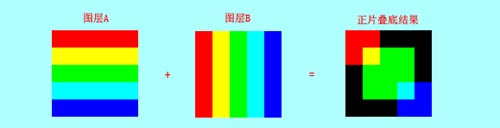这个“正片叠底”是怎么实现的呢?过程又是怎样的呢?用文字简直是难以表述,还是请看下图,动动脑筋,想一想,理解理解。