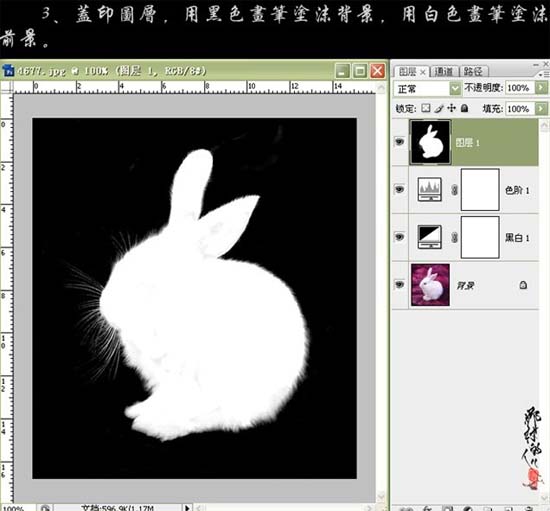 巧用Photoshop CS3黑白命令抠出可爱的白色小兔子